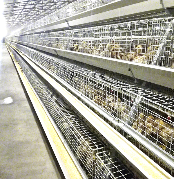 階梯式育雛育成設(shè)備結(jié)構(gòu)簡(jiǎn)單,造價(jià)低廉,具有自動(dòng)上料,自動(dòng)飲水,自動(dòng)消糞,環(huán)境自動(dòng)控制等特點(diǎn),雞籠支架材質(zhì)采用熱鍍鋅工藝,使用壽命為15年,雞籠采用冷拔鋼絲焊接后熱鍍鋅工藝,是普通冷鍍鋅壽命的3-4倍。